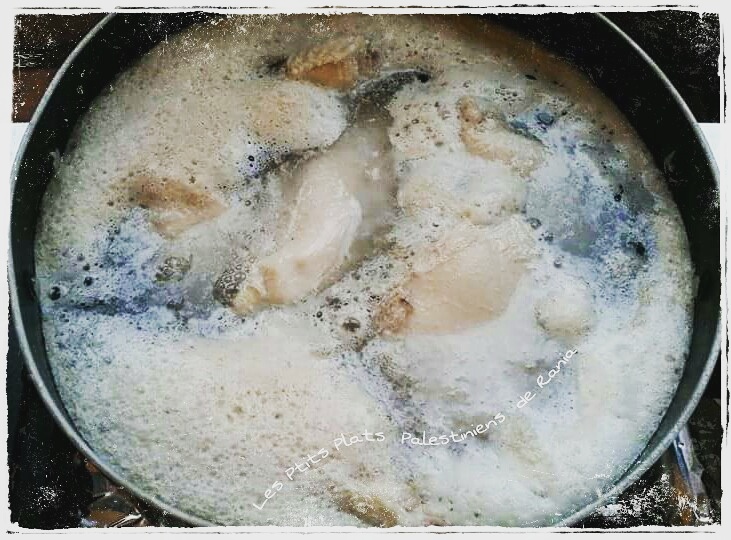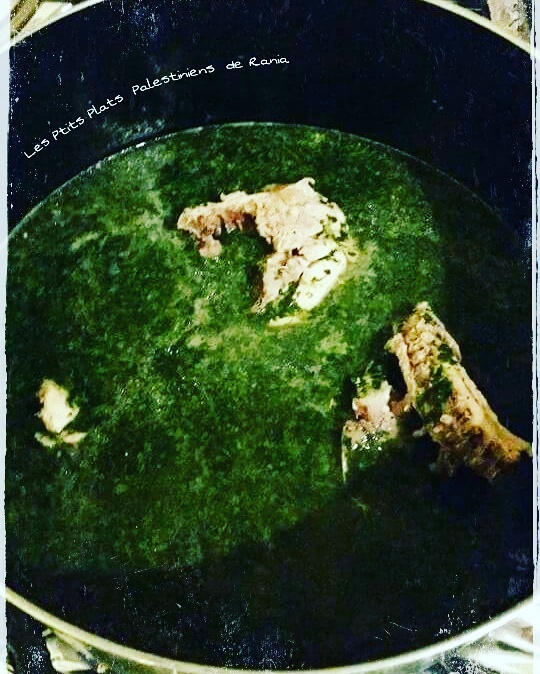 1) Sortez le mloukyeh surgelé des sachets et le poser dans une casserole.