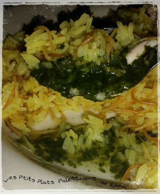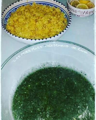 7) Voilà ! Il n’y a plus qu’à déguster le mloukyeh soit en le mettant sur le riz, soit en le dégustant séparément (assiette pour le riz/ramequin pour le mloukyeh).